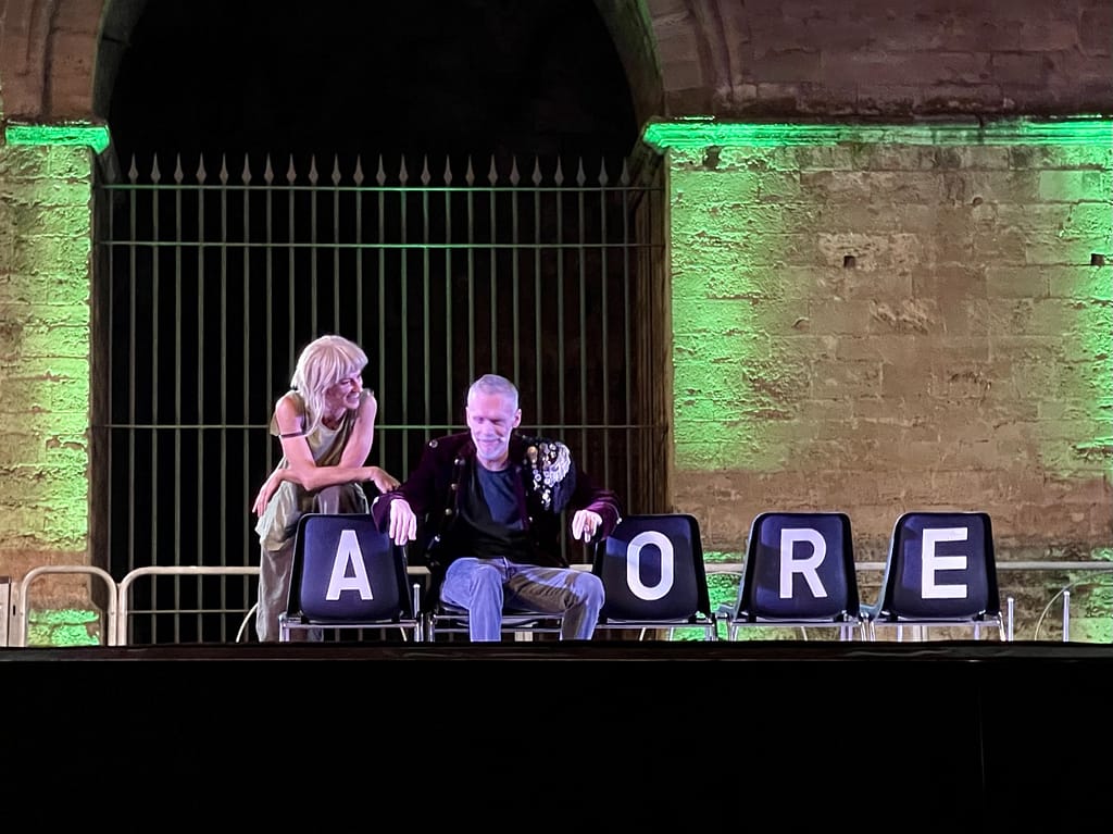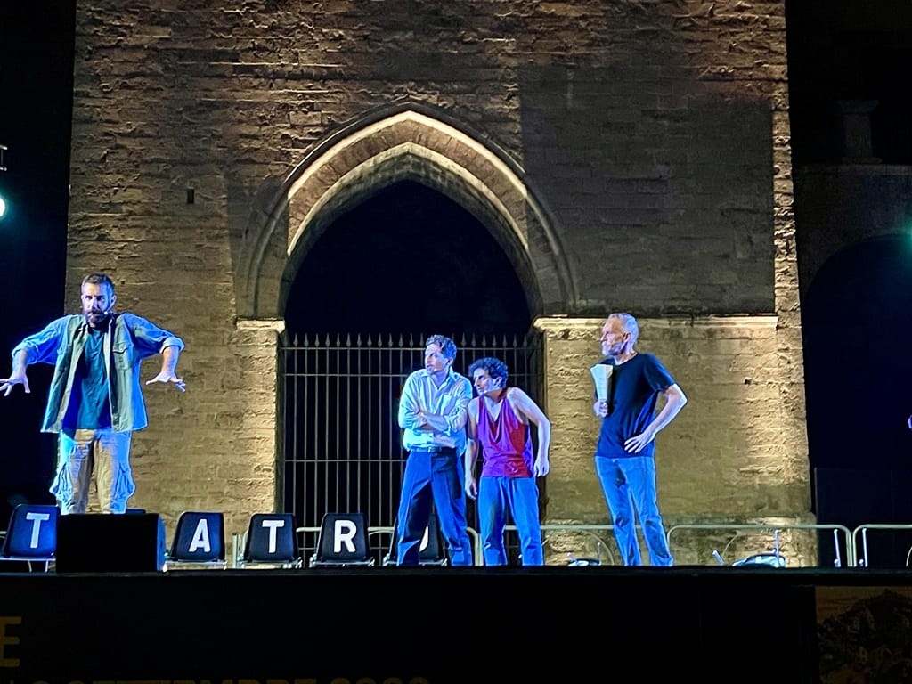 Le sedie sono state mosse durante la recita come in un grande gioco di Scarabeo a formare parole che sottolineavano l’essenza della scena e le battute degli attori hanno mosso a risate, ma anche a riflessioni profonde. La loro bravura è stata contagiosa e si sentiva un’adrenalina positiva che attraversava i corpi delle persone.
