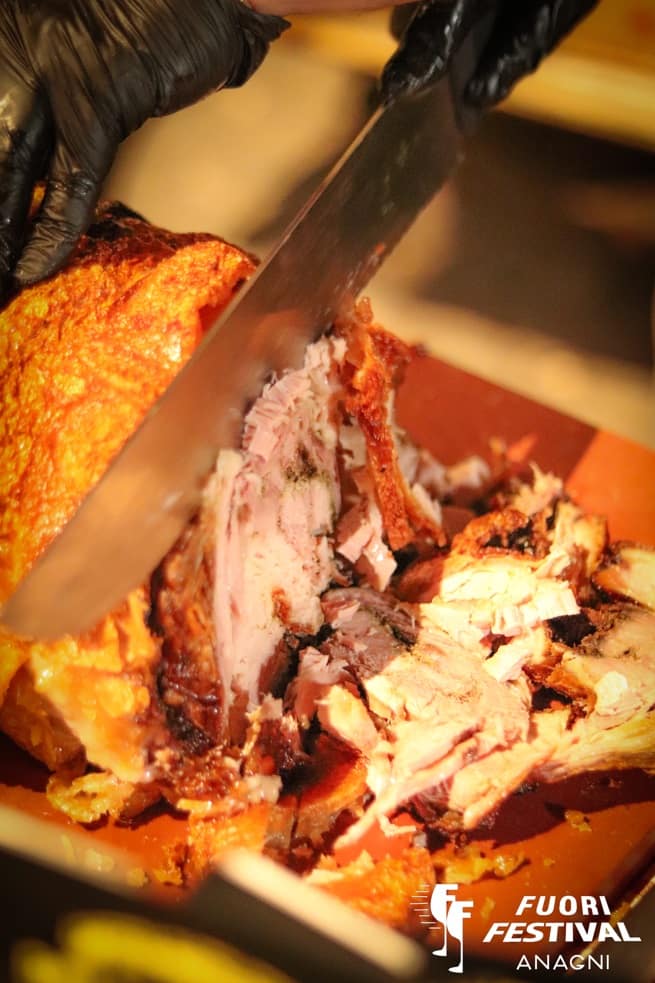 I salumi e la porchetta sono arrivati da Marco Pellegrini di Patrica, la capitale della famosa salsiccia. Un Fuori Festival che si allarga all’Alta Ciociaria e che presenta tutte le eccellenze di questo splendido (e gustoso) territorio.